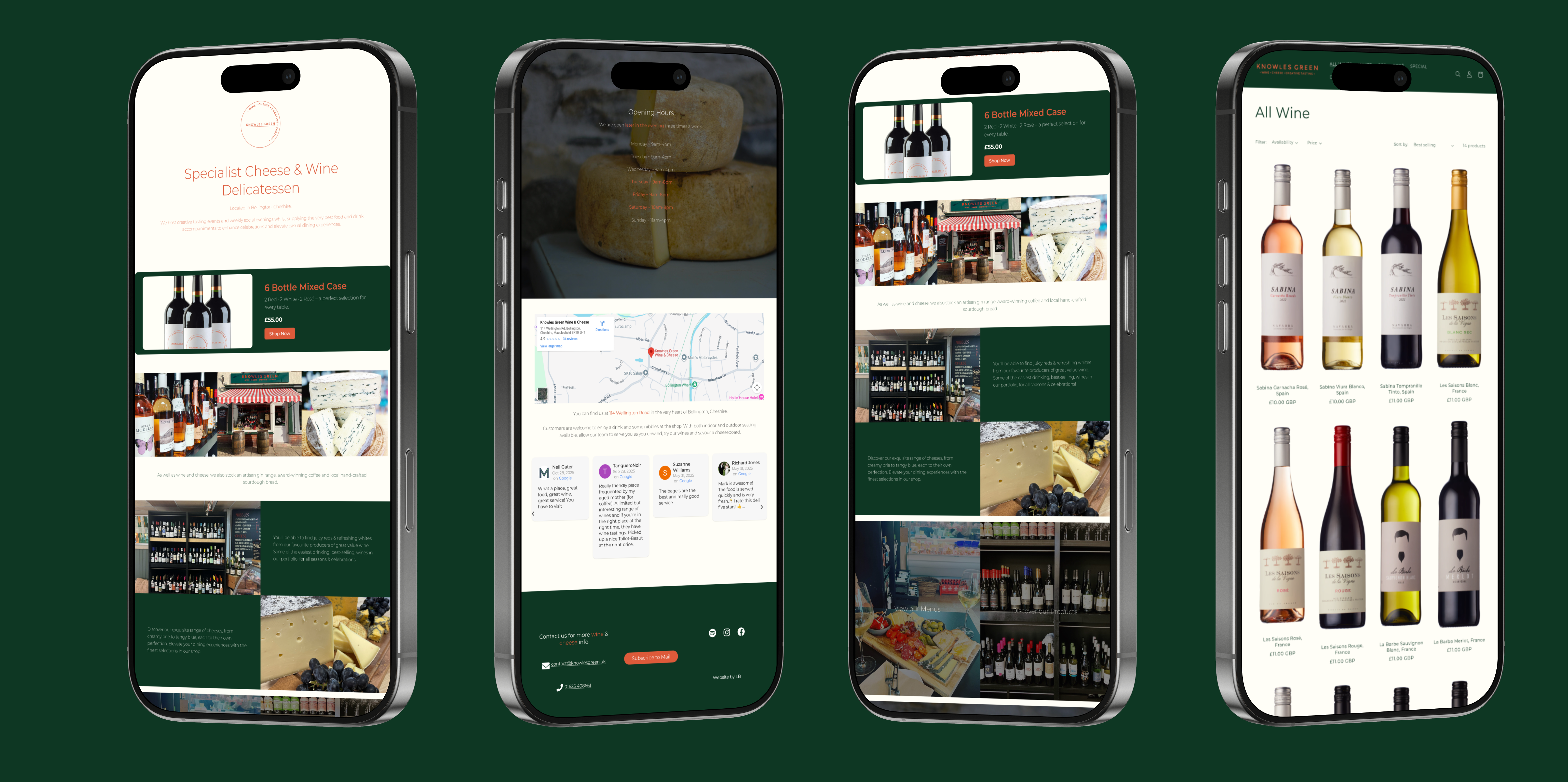 I designed and developed the website for Knowles Green, a boutique wine and cheese delicatessen based in