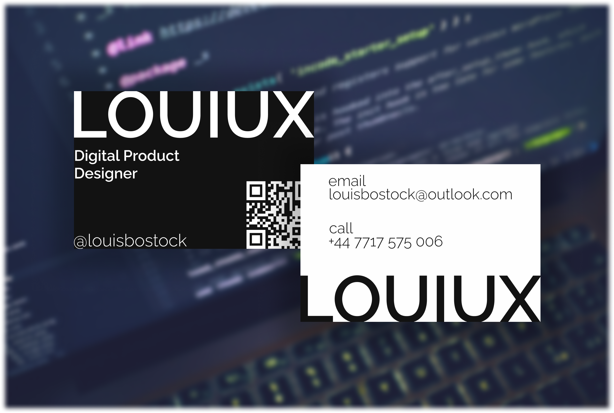 Alongside this, I designed a professional business card in Figma, exploring visual identity,